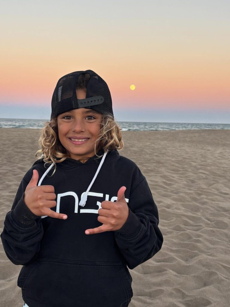 Alani grew up on the water. His life has always included sailing boats, windsurf boards, and long days at the beach. By the age of seven or eight he started to ride on his own. He learned by watching, trying, and playing. Every session helped him gain confidence.