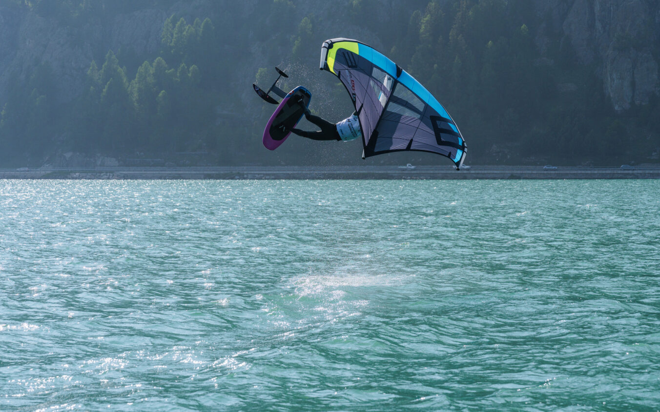 Dani’s home spot is Lake Uri, right in the middle of Switzerland. It’s where he wingfoils most and where he learned the basics of foiling. Thanks to its solid wind, open water, and dramatic mountain backdrop, it’s an easy place to stay motivated and keep progressing.