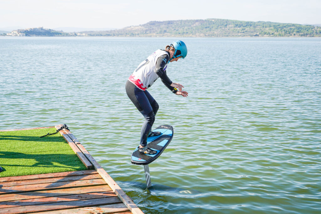 There is also a common misconception that you need a big run up before jumping onto the foil. In reality what matters much more is how you place your feet and how well your body weight is timed with the board speed.